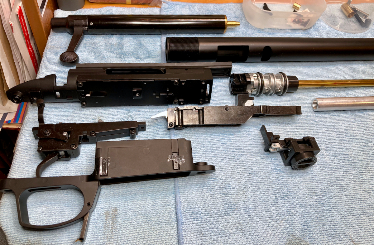 このあと、アッパーをストックに取り付け、スコープを載せて動作確認をします。