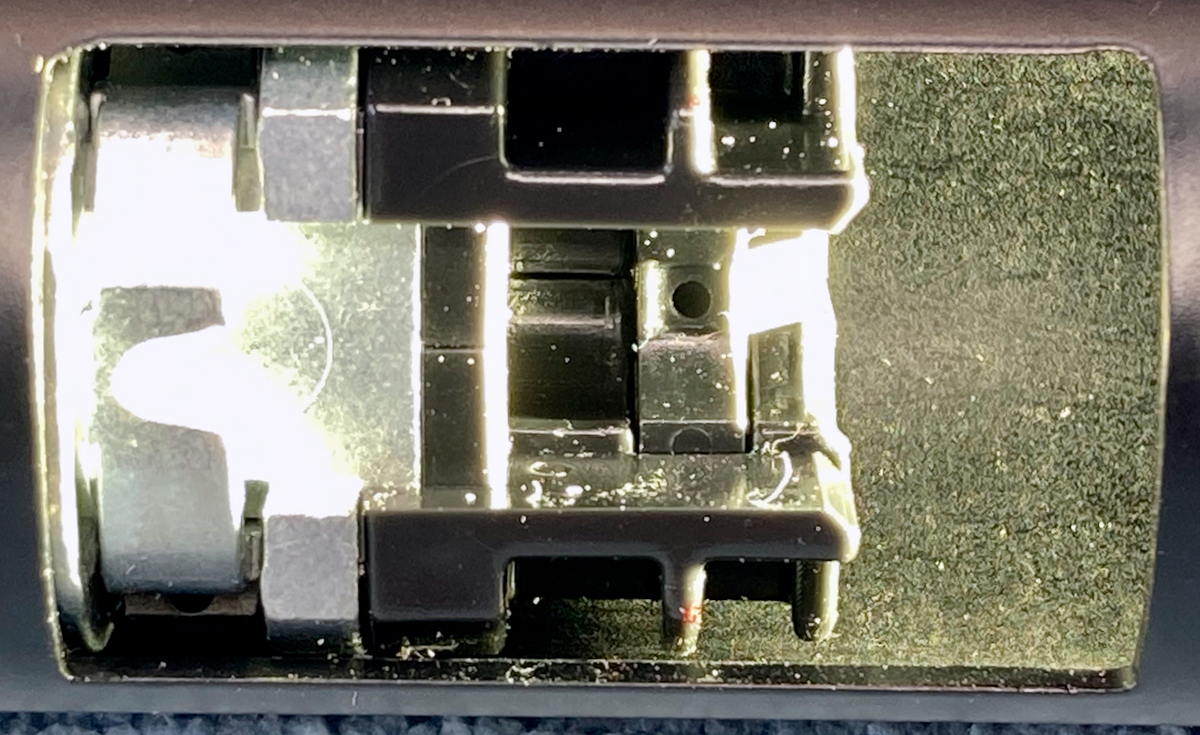 ホップ調整は、純正の押しパーツを僅かに加工することで重量弾に必要十分以上のホップシステムになります。マルイさんの設計は「絶対に弾詰まりさせない!」ように、押しパーツの可動範囲を制限してあります。可動範囲を少し広げる加工をします。